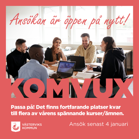 Komuvux i Västervik har lediga platser kvar. I kurs- och ämnesutbudet finns bland annat: